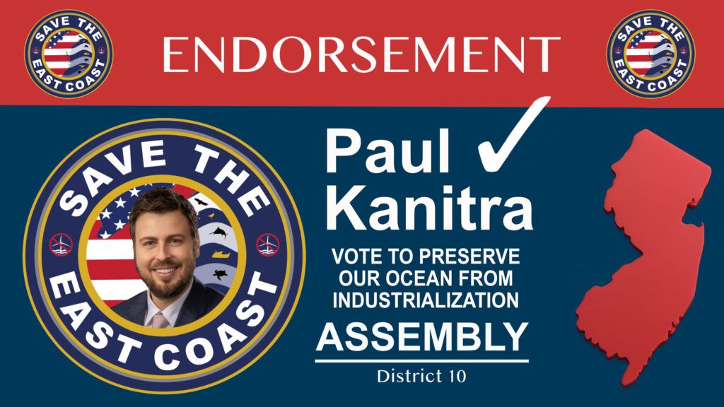 Save The East Coast endorses incumbent Assemblyman Paul Kanitra for District 10. Kanitra has been a strong advocate against offshore wind and the industrialization of the ocean since his days as mayor of his hometown Point Pleasant Beach. He will continue to advocate in Trenton for the people, the ocean, and against policies which harm tax payers and increase energy costs on residents.